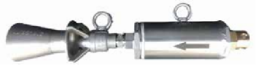 化学环喷雾安装于支架顶梁下方两立柱间,喷雾朝向煤壁方向。靠按压式延时阀控制喷雾。延时5秒后自动关闭。水雾随 风飘散,雾滴与粉尘凝并沉降,净化工作面风流,工作原理示意图如下图4所示。