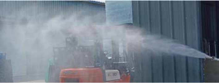 (2)两种喷雾都可在尾部产生负压,可将行人区域部分扬尘抽走沉降;